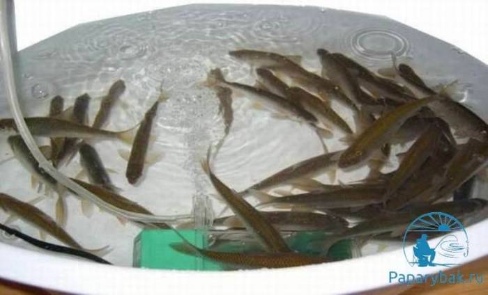 - Для сохранности мальков нужно использовать специальную емкость, оборудованную аквариумным распылителем воздуха. Время от времени вода в емкости продувается воздухом с использованием резиновой груши.