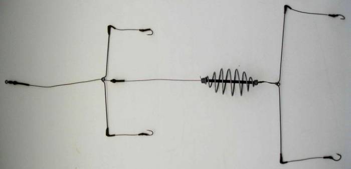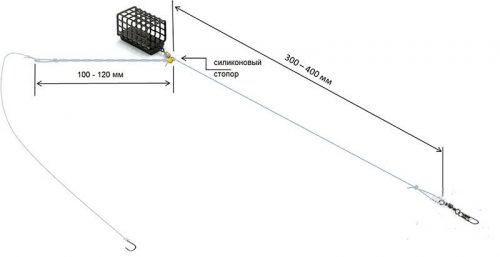 Такая оснастка для фидерной ловли больше всего подходит для ловли белой рыбы на реках с умеренным и большим течением. Снасть является самоподсекаемой, благодаря чему и завоевала особую популярность среди любителей фидерной рыбалки.