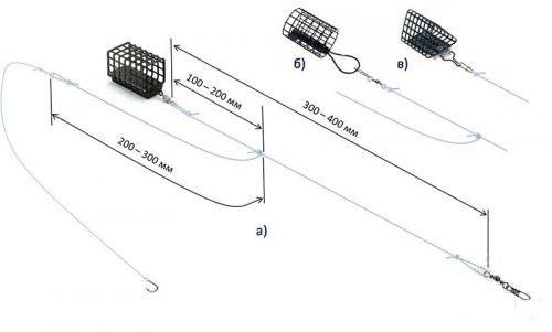 - закрепить в нижней части оснастки кормушку через петлю или привязать вертлюжок с застежкой либо просто застежку для крепления кормушки.