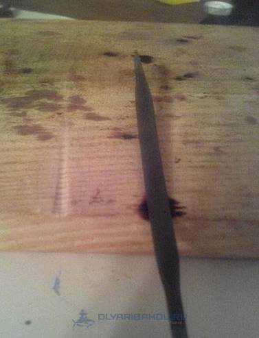 Сделать такую мормунку, сначала выполните полукруглый разрез с файлом на деревянной доске.