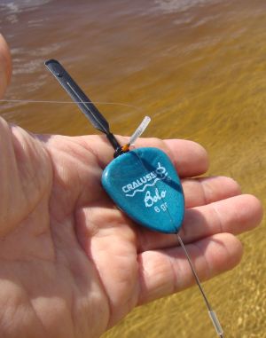 За счет того, что основное грузило свободно скользит по леске, в начальной стадии поклевки рыба практически не чувствует тяжести оснастки. Во всех остальных случаях съемные штырьковые грузила оказываются более практичными. Их можно легко передвигать по леске, оперативно менять на более тяжелые или легкие. Особенно ценным это свойство штырьковых грузил бывает при ловле рыбы с плоскими поплавками Cralusso Bolo (фото 5) или Cralusso Surf (сама оснастка – на фото 3, рис. 3).
