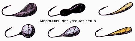 Во всех этих снастях используются мормышки. На течении же закорм лучше осуществлять через вторую лунку, расположенную строго вверх от рабочей. В ней располагается сетчатая кормушка, из которой течение вымывает корм и формирует кормовое пятно, соответственно, по направлению потока.