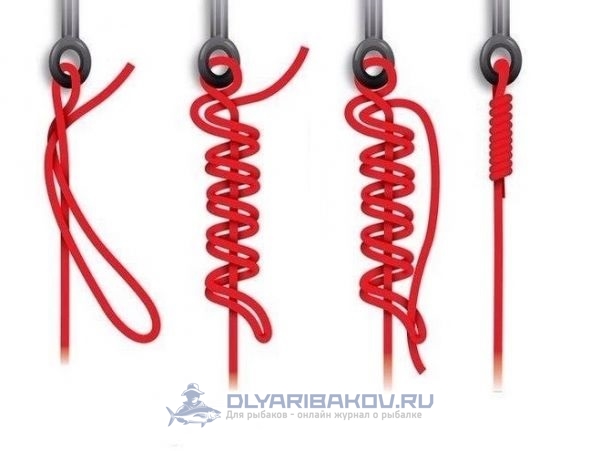 - Сформируйте петлю, после чего сделайте несколько оборотов поводком вокруг лесок.