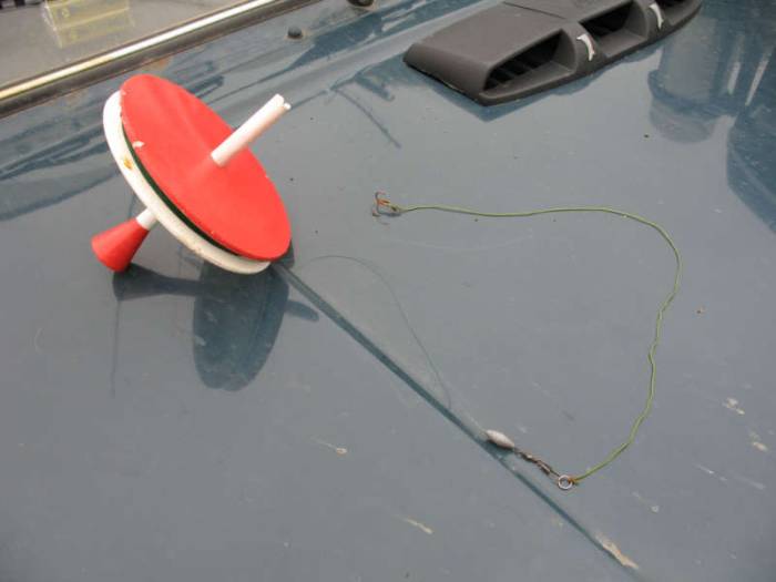 Поэтому желательно, чтобы основная леска составляла с поверхностью воды большой угол. Ито достигается либо поднятие в высоту точки крепления снасти, либо применением ее плавучей модификации.