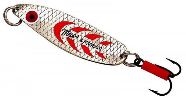 Приманка имеет тело средней ширины с сильным S-образным изгибом. Она хорошо работает как на течении, так и в стоячей воде. На одном из сторон Mepps Cyclops расположен крупный голографический глаз, который дополнительно раздражает щуку и служит ориентиром при атаке, в результате чего снижается количество пустых поклевок.