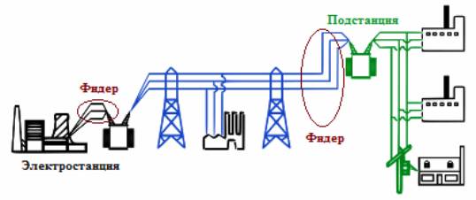 В энергетике фидер – это линия, ведущая от подстанции к подстанции или от подстанции к распределительному устройству