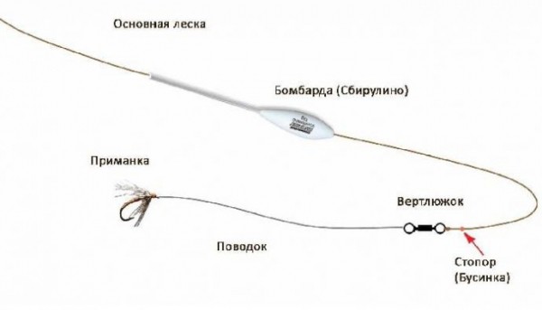 - Бомбарда, которая медленно идет ко дну, привлекает хищную рыбу.