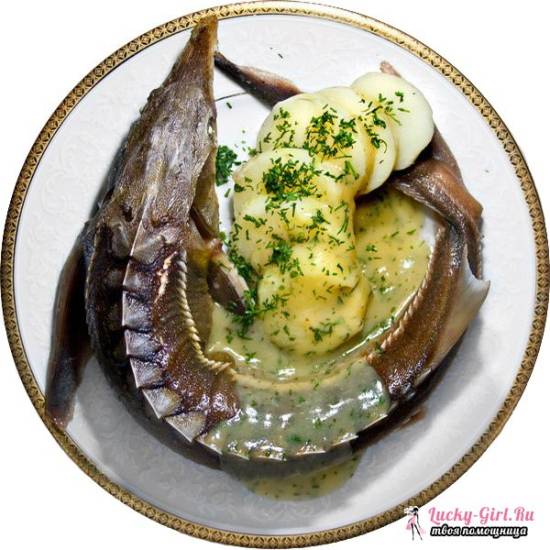 Стерлядь – ближайшая родственница осетра. Она имеет хрящевой скелет и мясо без костей. Так, что ничто не мешает приготовить из нее вкусные и разнообразные блюда. Например, запечь ее целиком или порционными кусочками, с различным гарниром и соусом на противнях или сковородках.