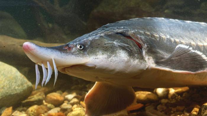 Это самый мелкий представитель этого семейства, так как вырастает в длину не больше 120 см, при весе в 20 кг. Рыба отличается наличием длинных усов, которые достигают рта и узким, но удлиненным носом. При этом, нижняя губа разделена на 2 части, а по бокам тело покрыто сплошными щитками. Такие же щитки защищают рыбу и со спины. В зависимости от места обитания стерлядь может отличаться разным цветом, хотя основная ее раскраска – это желто-белый живот и серо-бурая спина. Все плавники имеют серый оттенок. Различают стерлядь остроносую и тупоносую. Места обитания – северные регионы Сибири.