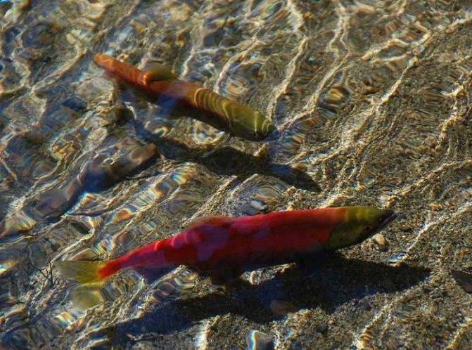 Каждый год в сезон икрометания сюда заходит лосось и сырть.