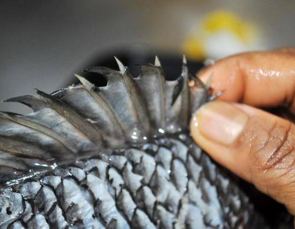 Если таковых нет, то можно осторожно срезать опасный плавник ножом. Срез выполнять необходимо поперек роста плавника захватывая небольшую часть мяса судака и в направлении от себя. После того как плавники удалены, можно начать снимать чешую