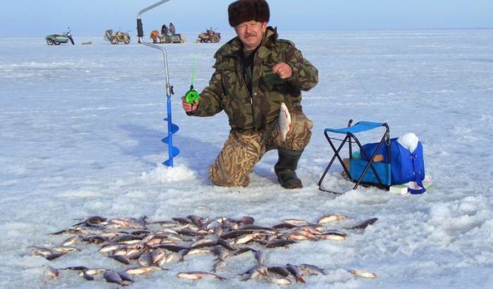 Если он небольшой, лунки надо сверлить от берега, измеряя глубину.