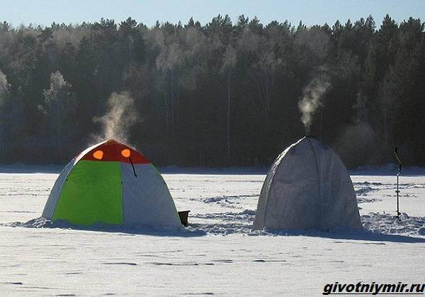 Рыбаки обычно сидят в палатках. Их можно приобрести в рыболовных магазинах, они выпускаются на любой вкус и кошелек.