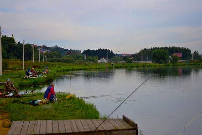 Рыбаки могут поймать трофейного карпа весом до 15 кг, щуку весом до 11 кг или же сома до 15 кг весом. Кроме того, один рукав пруда – это скопление коряг затопленных водой – любое место для щуки.