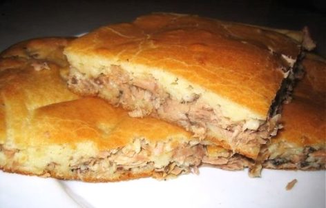 Заливной пирог с рыбными консервами на кефире — рецепт в духовке