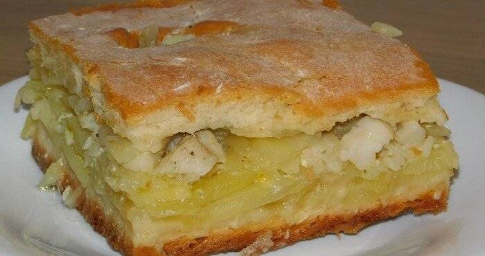 Вариант 1: Классический пирог с треской и рисом из теста на воде и сухих дрожжах