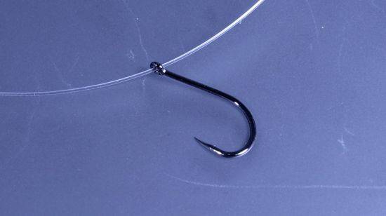 Флюорокарбон для привязывания крючка должен легко проходить через его ушко.