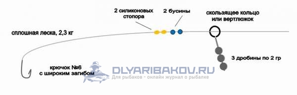 Флюрокарбоновый поводок используют при изготовлении разнесенных оснасток, таких как: