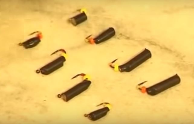 - При помощи оправки и деревянного бруска из металла выдавливается определенная форма будущей приманки.