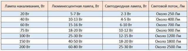 Метод справедлив, если основной источник свет – лампы накаливания или люминесцентные трубки. Для светодиодов пользоваться такой формулой недопустимо. Ведь одинаковые по мощности Т8 или Т5 и LED-модуль будут давать принципиально разный уровень освещенности. Например, световой поток в 200 Лм даст лампа накаливания 20 Вт, люминесцентная 5-7 Вт и диодная 2-3 Вт.