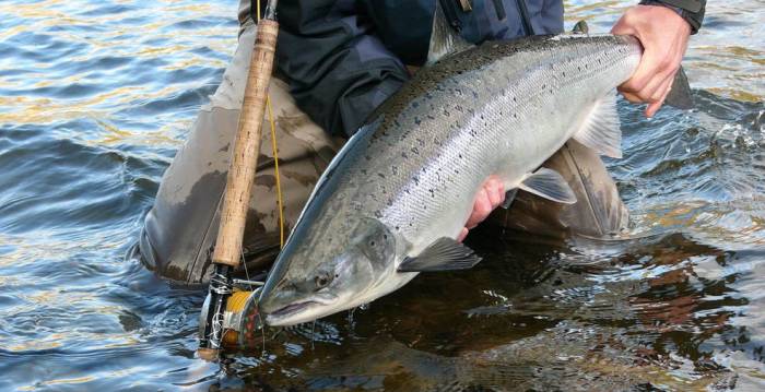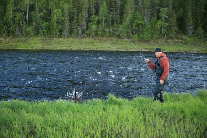 Но из-за врожденной осторожности и развитого инстинкта самосохранения он редко подходит к берегу, поэтому основной снастью для ловли семги является дальнобойный спиннинг