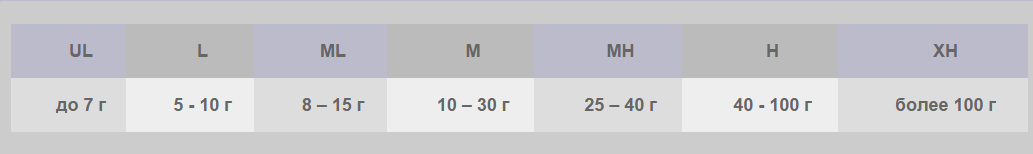 По показателю теста проводится условная классификация удилищ. Подобную классификацию можно назвать условной по причине того, что не все производители придерживаются этим нормам.