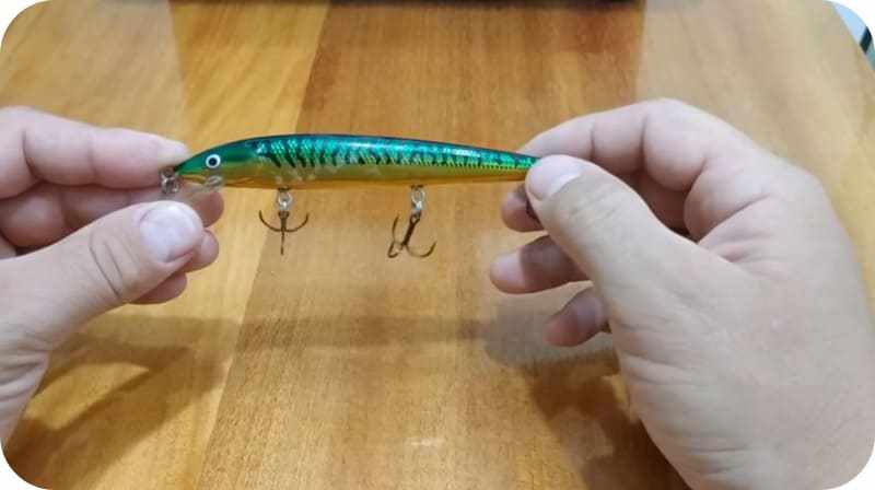 Вид искусственной наживки определяется в соответствии с конкретным местом ловли. Поскольку в качестве основной добычи хищника выступает уклейка, стоит остановиться на модели «минноу» естественной окраски. Если вода мутная, используем яркие тона приманки.