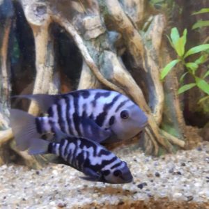- Для семейки чернополосых цихлазом обязательно следует выделить укромный уголок и оснастить его надёжными укрытиями — корягами, кокосовой скорлупой, керамическими черепушками.