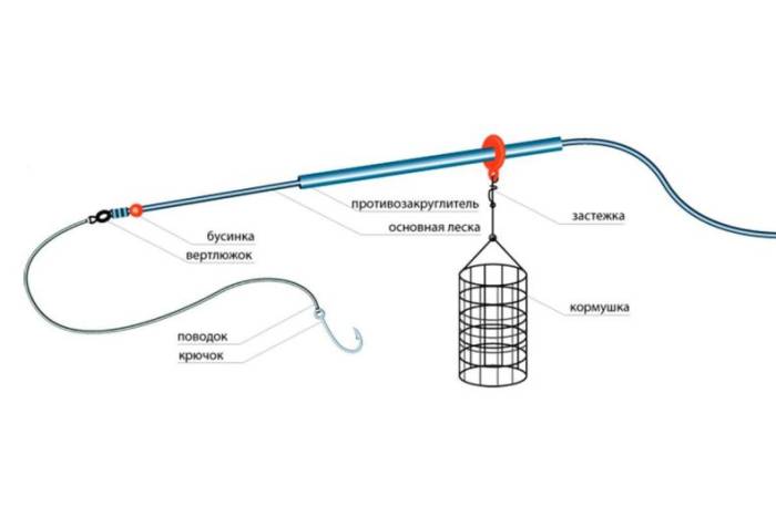 Под фидерной оснасткой понимают соединение груз-кормушки, поводка и крючка с насадкой на леске за счёт нескольких узлов. Её задача добиться максимальной чувствительности кончика фидера к поклёвкам рыбы. Нужен эффект самоподсечки, спрятать кормушку с леской.