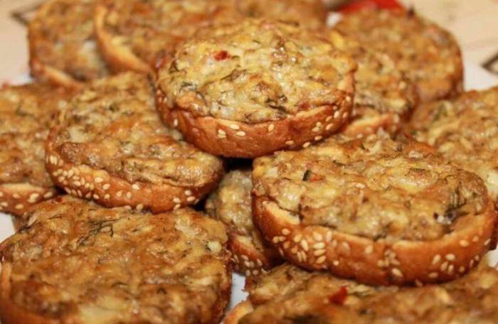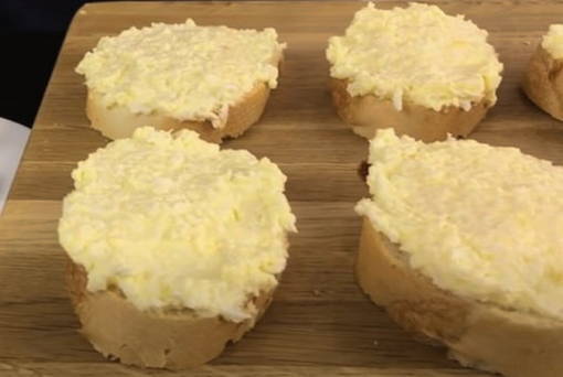Еще рецепт приготовления бутербродов которые можно приготовить за раннее и разогреть перед приходом гостей что бы подать на стол закуску с пылу с жару.