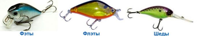 - фэт (fat в переводе с английского толстый) — для кренбейта характерно короткое круглое тело, воблеры отличаются активной игрой, являются сезонной приманкой, работают преимущественно по тёплой воде;