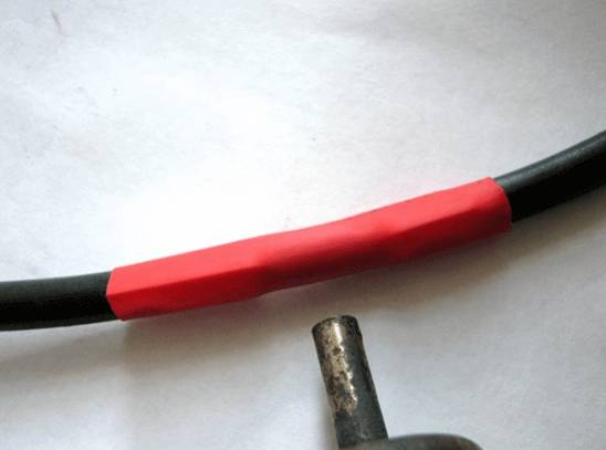 Второй вариант — это паяльник. Кожухом нагревательного элемента пройтись по поверхности трубки и она усадится. Жалом не нужно этого делать по трем причинам: