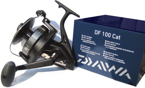 Daiwa “DF Cat 100” – безынерционный вид снасти, корпус которой сделан из алюминия. Это дает возможность применять к ней максимальные нагрузки. Шпуля обладает большой вместительностью. Фрикцион способен выдержать вес до 15 кг. Весит снасть в среднем 850 г. Стоимость такой снасти при заказе через интернет составляет примерно 4000 руб., покупка в розничном магазине обойдется в 4500-4800 руб.