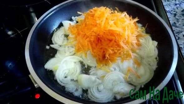 - Нарезаем тонкими полукольцами лук. По желанию лук можно обжарить.