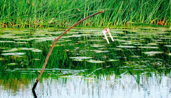 Побороться с хищницей вам придется если в момент поклева вы оказались около жерлицы. Схватив наживку она начнет уходить в заросли. В этот момент главное не спешить. Рыбешка пока еще просто находится в пасти щуки, а крючок не насажен. Выждите несколько секунд. Не спешите подсекать.